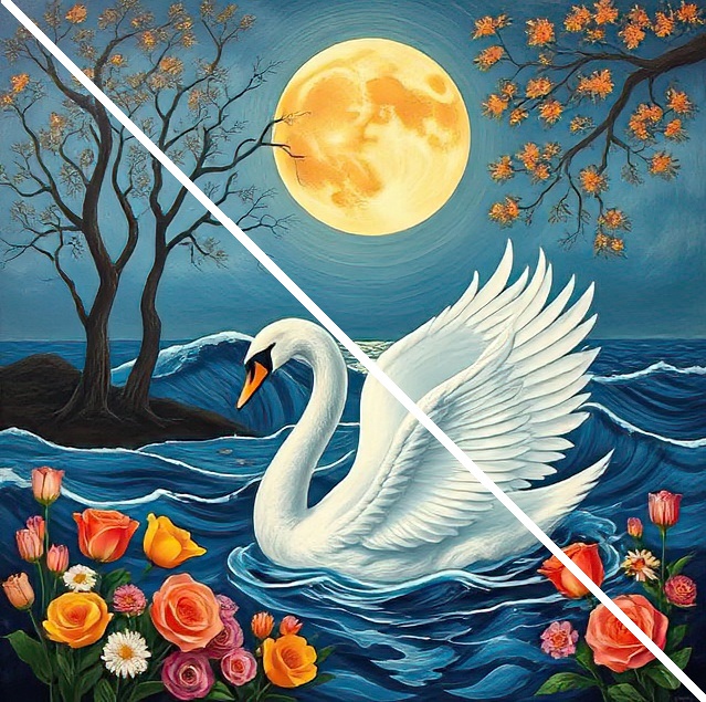 Emotional Impact: Natural imagery often triggers positive emotions, such as tranquility, joy, or nostalgia. The graceful swan, vibrant flowers, and serene lake can serve as a reminder of purity, elegance, and the simplicity of nature, offering an emotional escape from daily stress.
